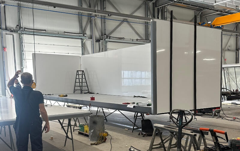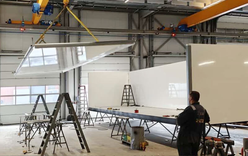 De opdracht van Zuidwijk Carrosserieën bestond uit het ontwikkelen en bouwen van een esthetische container van 10 x 3 meter, met een slim en uniek ontwerp. Het belangrijkste kenmerk? Een volledig uitneembaar wanddeel. Deze wand is voorzien van deuren en een schuifpui en kan in zijn geheel worden gedemonteerd. Zo kan de fire trainer eenvoudig op locatie worden geïnstalleerd. Na installatie wordt de wand weer teruggeplaatst en is de cabine klaar voor transport.